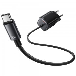 A USAMS JC Series CC264 fali töltő egy modern eszköz, amely kivételes töltési teljesítményt nyújt. 30 W-os teljesítménnyel, USB-C porttal, és egy beépített USB-C kábellel gyorsan és hatékonyan töltheted eszközeidet. A Power Delivery (PD) technológiával lehetővé teszi a gyors töltést olyan eszközök számára, mint az okostelefonok és táblagépek. A tartósság érdekében kiváló minőségű anyagokból készült, ellenáll a sérüléseknek. Kompakt mérete miatt minden utazótáskába belefér. Az USAMS logó a töltőn kiemeli az eszköz egyediségét. A GaN technológia hatékony és gyors töltést biztosít. Két eszközt tölthetsz egyszerre a beépített USB-C kábellel és USB-C porttal, így nincs szükség szabad konnektort keresni.
