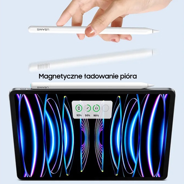 A USAMS stylus egy beépített 130mAh-s akkumulátorral rendelkezik, amely akár 9 órányi folyamatos használatot tesz lehetővé egyetlen töltéssel. Az intelligens automatikus kikapcsolás funkció 5 perc tétlenség után aktiválódik, ezzel energiát takarítva meg és meghosszabbítva az üzemidőt. A töltés pedig hihetetlenül egyszerű és elegáns: iPad táblagéppel párosítva a stylus vezeték nélkül töltődik, egyszerűen a táblagéphez mágnesesen csatlakoztatva. Az akkumulátor töltöttségi szintjét valós időben, könnyedén nyomon követheted az iPad képernyőjén megjelenő akkumulátor widget segítségével.