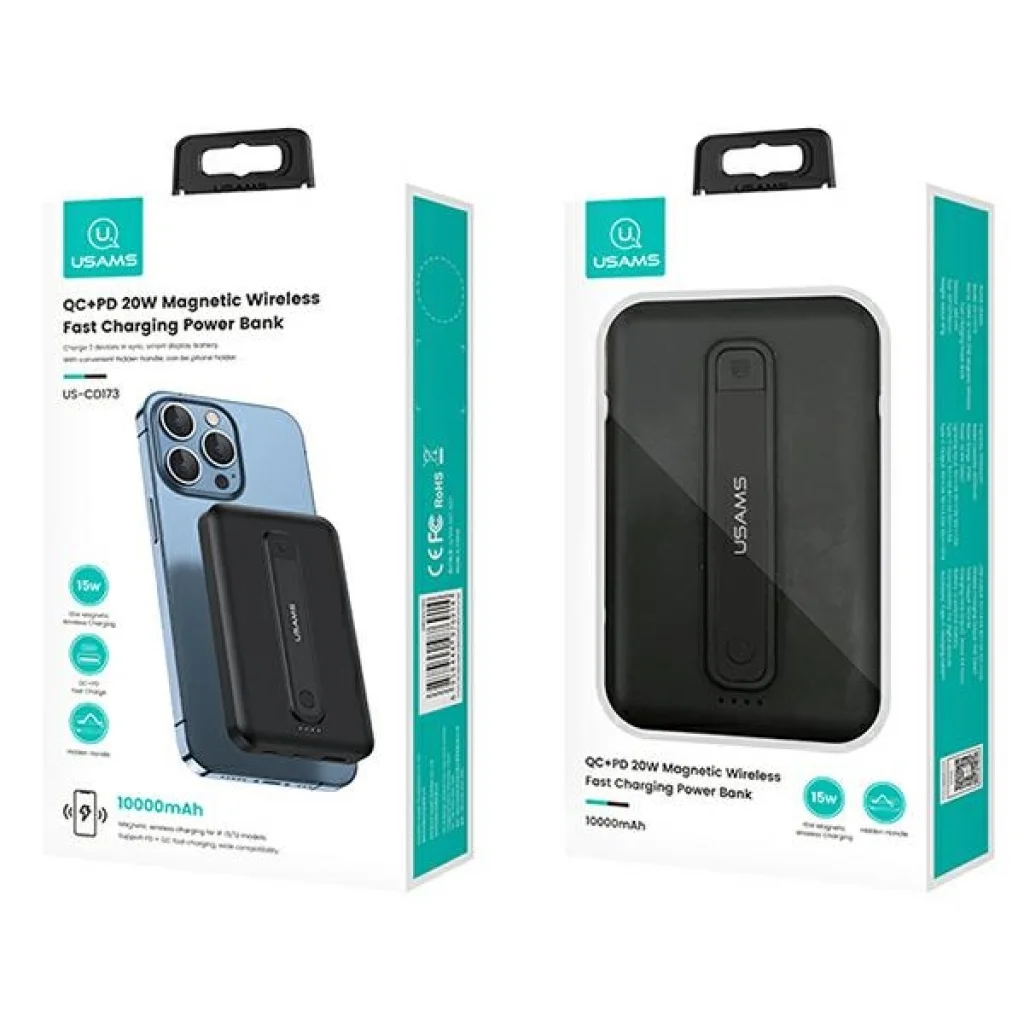 USAMS powerbank PB64 10000mAh 20W QC3.0+PD mágneses vezeték nélküli Gyors Töltés fekete 10KCD17301 (US-CD173)