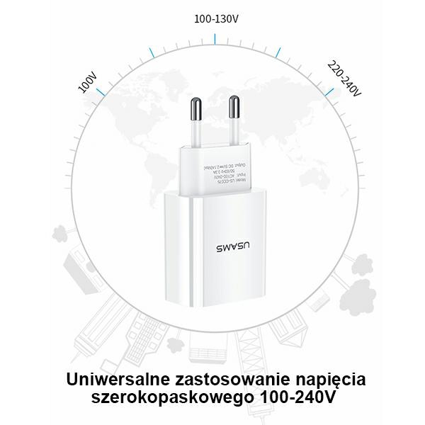 USAMS T18 fali töltő USB-C (PD) bemenettel - Intelligens áram adaptáció, gyors töltés - Erős ABS kialakítás, ellenáll a sérüléseknek - Gyors Töltés 2.1A - Biztonságos és stabil. Beépített intelligens chip, automatikusan szűri a veszélyes feszültséget és áramot, védi az akkumulátort - Anyag: ABS - Teljes kimeneti teljesítmény: 5V - 2.1A