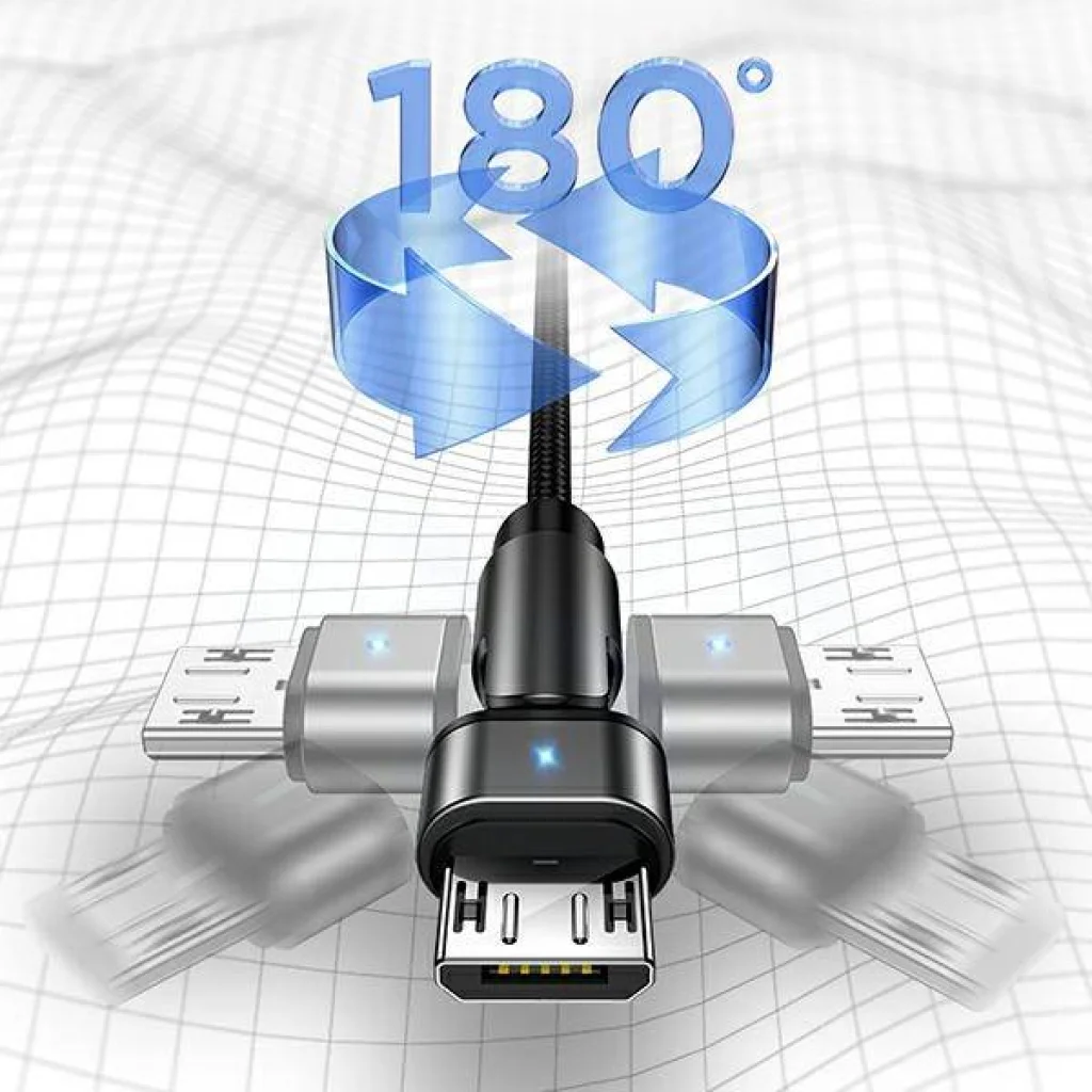 A nylon szövés biztosítja a kábel hosszú és problémamentes használatát a mechanikai sérülések veszélye nélkül. A forgatható fejnrk köszönhetően a telefont úgy helyezheti el, ahogy szeretné. A kábel Smart Chippel van ellátva – egy intelligens chippel, amely megvédi készülékét a váratlan túlfeszültségektől.