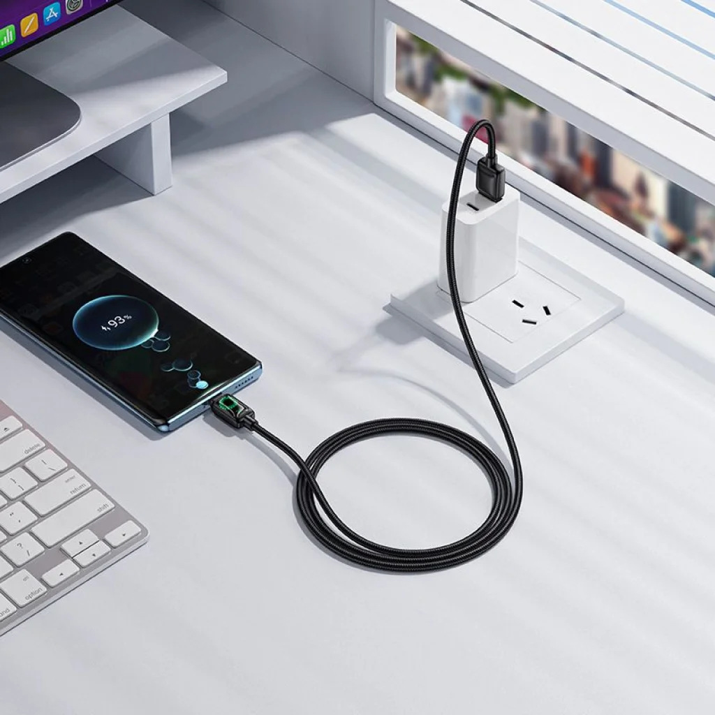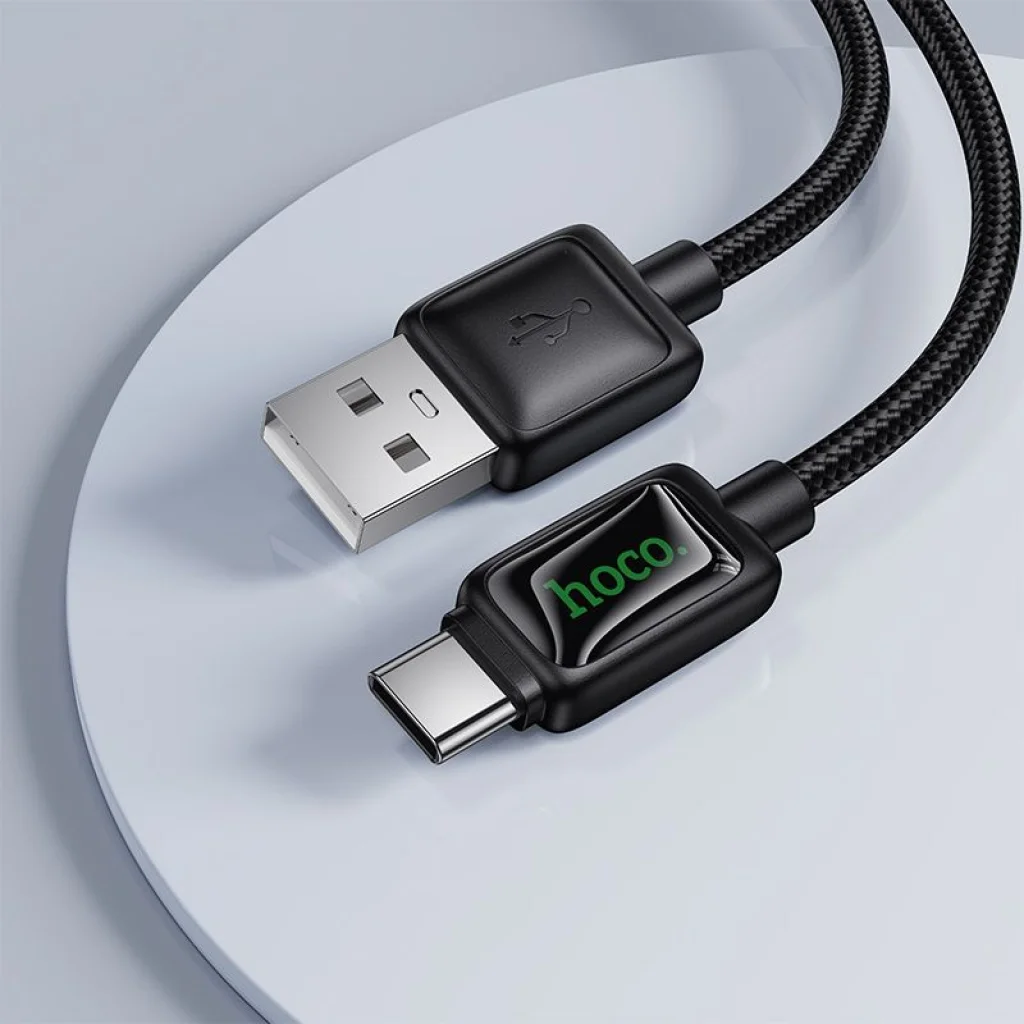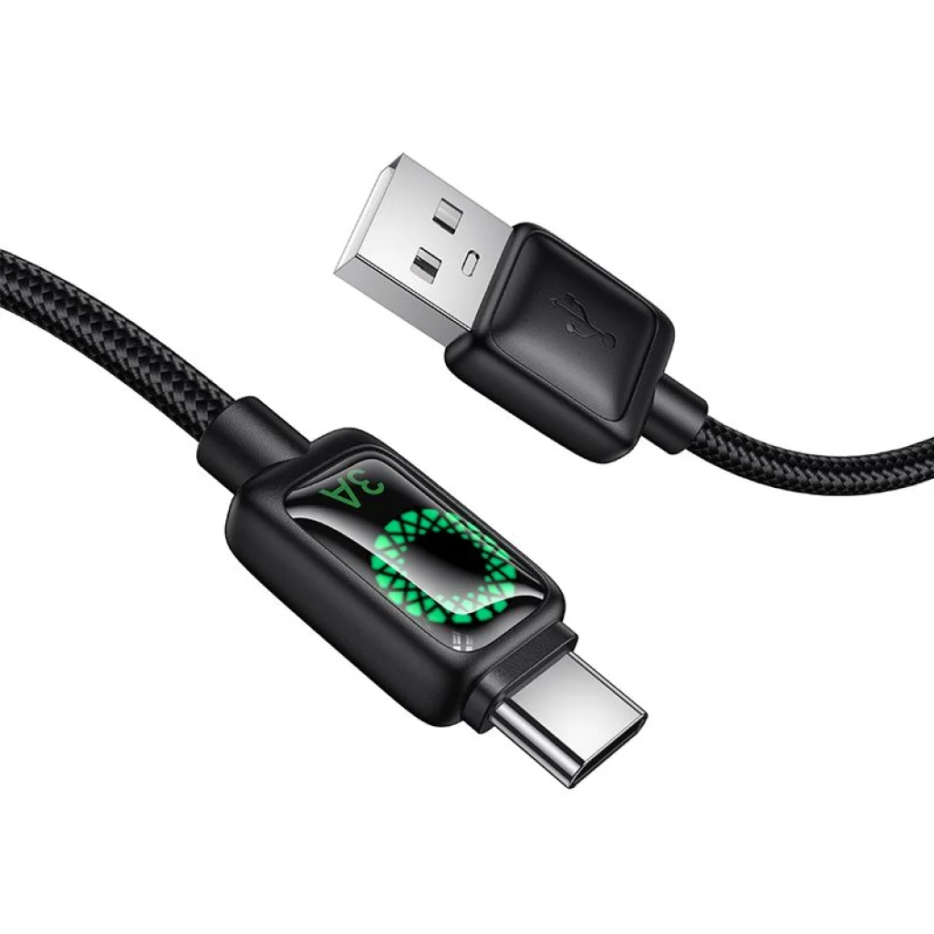 USB A-ról USB C-re LCD kijelzős kábel Hoco 3A 1,2 m fekete