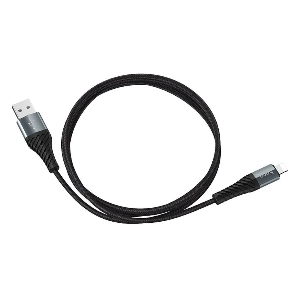 USB-A to Lightning Kábel Hoco X38 Cool - Fekete. A HOCO X38 Cool USB to Lightning kábel használható mind készülékek töltésére, mind adatátvitelre. Támogatja a maximális 18W teljesítményt, a gyors töltést, és a nagy sebességű adatátvitelt. A kábel külső rétege nylon fonatból készült, amely biztosítja a tartósságot és szilárdságot. A csatlakozók megerősítettek és rugalmasak, ellenállva a többszöri hajlításnak.