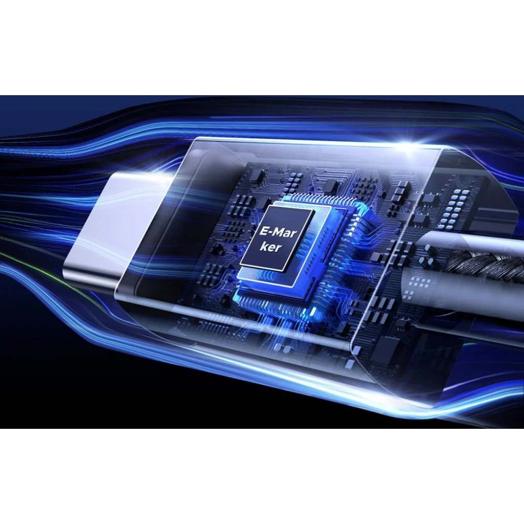Robusztus felépítés és fejlett E-Marker A beépített E-Marker chip gondoskodik az eszközök közötti optimális kommunikációról, így biztosítva a legjobb töltési teljesítményt és biztonságot. A kábel több mint 30 000 hajlítási tesztet állt ki, ami bizonyítja rendkívüli tartósságát. A strapabíró nejlonfonat erősíti a kialakítást, az alumínium csatlakozóház pedig nemcsak nagyobb ellenállást biztosít a sérülésekkel szemben, hanem modern megjelenést is kölcsönöz a kábelnek.