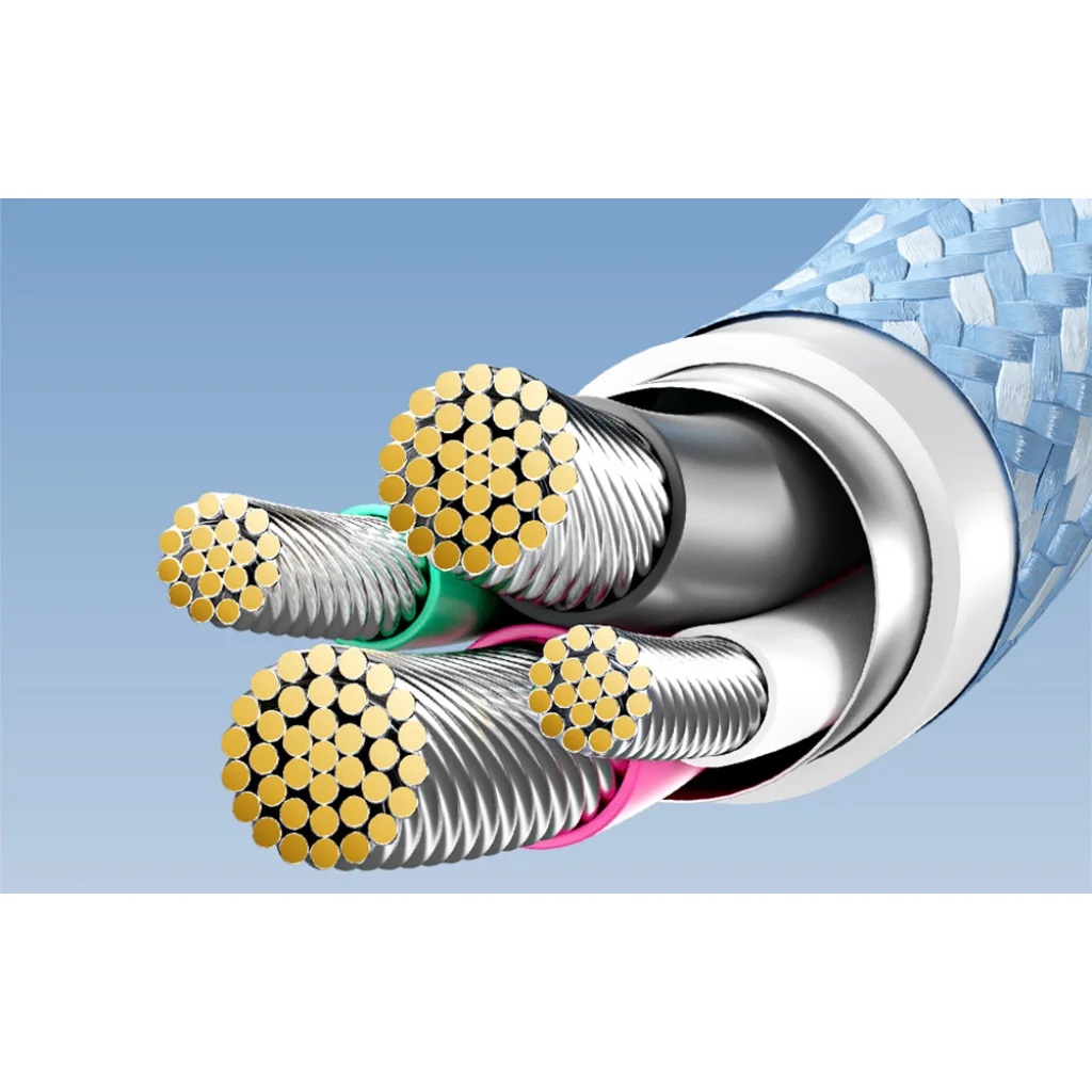 Ezt a kábelt erős PVC-konstrukció és alumínium ház jellemzi, amely nemcsak esztétikus megjelenést biztosít, hanem védelmet nyújt a mechanikai sérülésekkel szemben is. Emellett rugalmas burkolata megakadályozza a kábel összegabalyodását, így rendkívül kényelmes a használata.