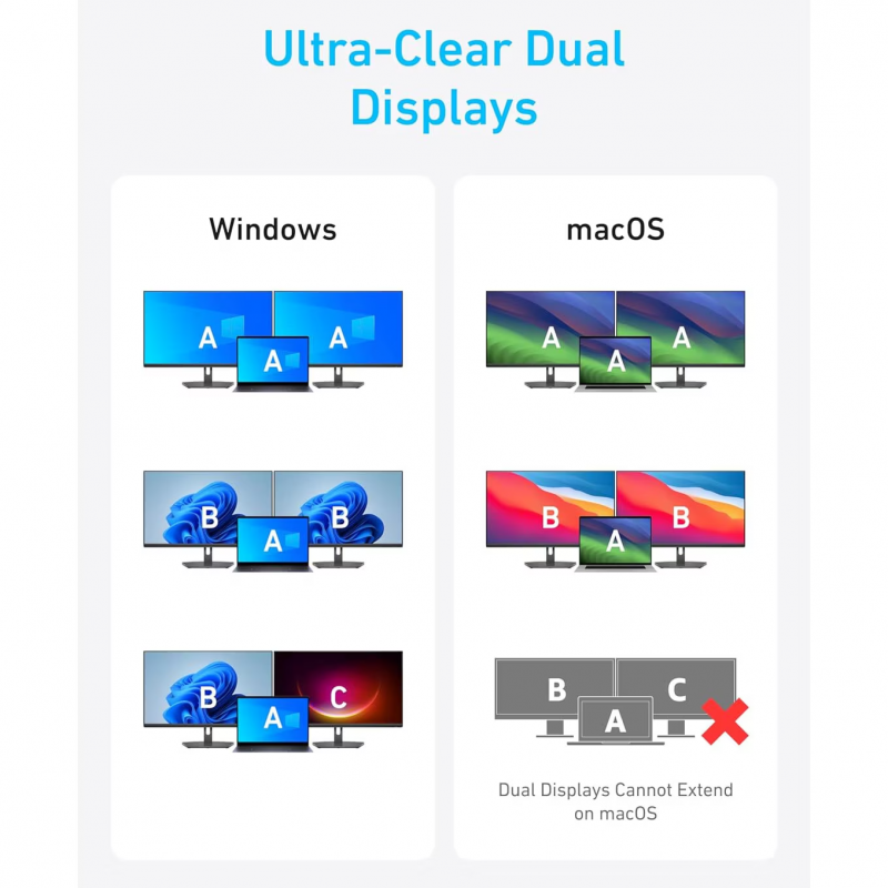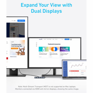 Az USB-C Hub Anker - Szürke egy 7 az 1-ben USB-C elosztó, amely ideális azoknak, akik gyorsaságra, kiterjesztett csatlakoztathatóságra és maximális produktivitásra van szükségük az irodában, otthon vagy útközben. Kifejezetten multitaskingra tervezve ez a hub egyetlen USB-C portot teljes munkaállomássá alakít át, kettős video kimenetekkel, gyors töltéssel, ultragyors adatátvitellel és széles körű kompatibilitással a modern eszközökkel. Az 2 HDMI port segítségével egyszerre két külső monitort csatlakoztathatsz 1080p/60Hz felbontással, így kibővítheted a munkaterületedet sima szerkesztés, elemzés, streamelés vagy multitasking céljából. A professzionális szintű adatátvitelt az USB 3.2 port 10 Gbps sebességgel biztosítja, amely ideális nagy fájlok, külső SSD-k vagy gyors biztonsági mentések számára. Az USB-C Power Delivery port akár 100W teljesítményt is biztosít, így a laptopod folyamatosan töltve maradhat a hub használata közben (85W áll rendelkezésre, miután az eszköz által használt energia levonásra kerül). A prémium alumínium fém kivitel eleganciát és tartósságot kölcsönöz a hubnak, az integrált védelemi funkciók (rövidzárlat, túlfeszültség, hőmérséklet-szabályozás) pedig garantálják a biztonságos használatot.