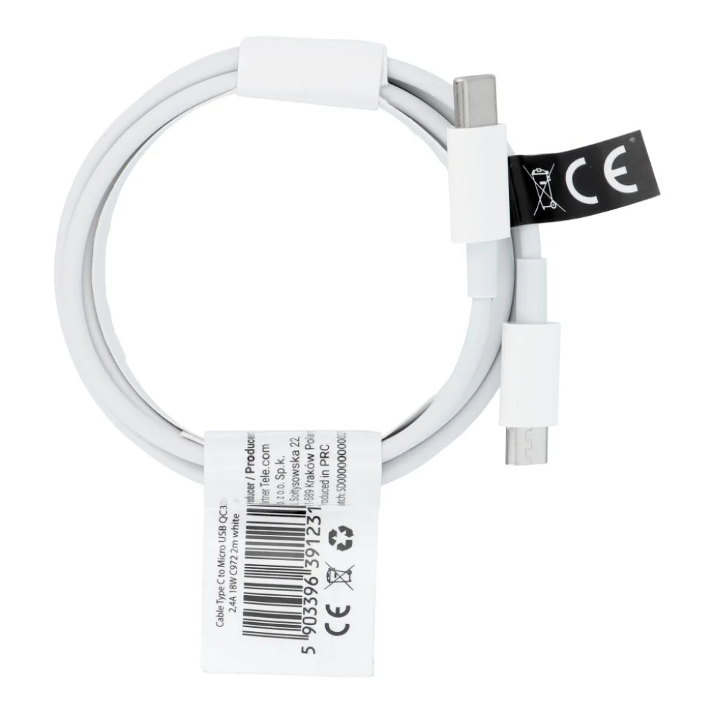 USB C - Micro USB kábel QC3.0 2,4A 18W C972 2 m fehér