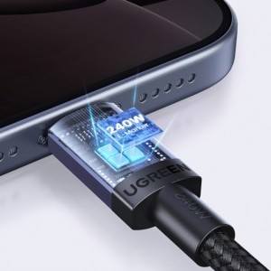 Ugreen L532 USB-C-USB-C kábel, Power Delivery (PD) 240W, 480Mbps, 3m (szürke). Az Ugreen L532 kábel tökéletes megoldás azok számára, akiknek stabil és ultragyors töltésre van szükségük az elektronikus eszközökhöz és adatátvitelre. A gyorstöltési szabványok támogatásával és az akár 240 wattos teljesítményével tökéletesen működik laptopokkal, táblagépekkel és okostelefonokkal. A 3 méteres hosszának köszönhetően kényelmesen használható útközben, az irodában vagy az autóban, a hajlításálló kialakítása pedig hosszú élettartamot és megbízhatóságot biztosít.