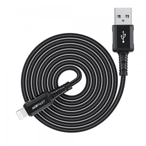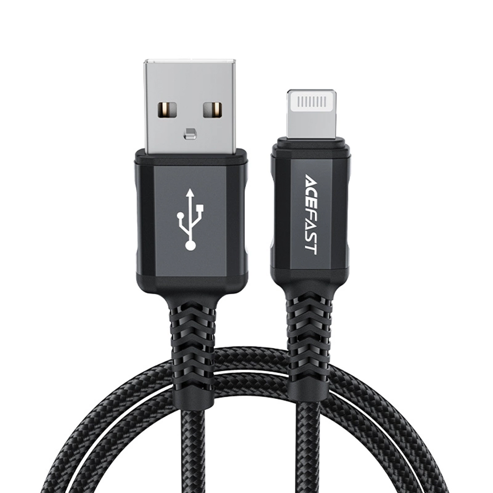 USB to Lightning 2.4A Fekete Acefast Data Cable (C4-02) - Gyors Töltés, Alumínium Ötvözet, 1.8m