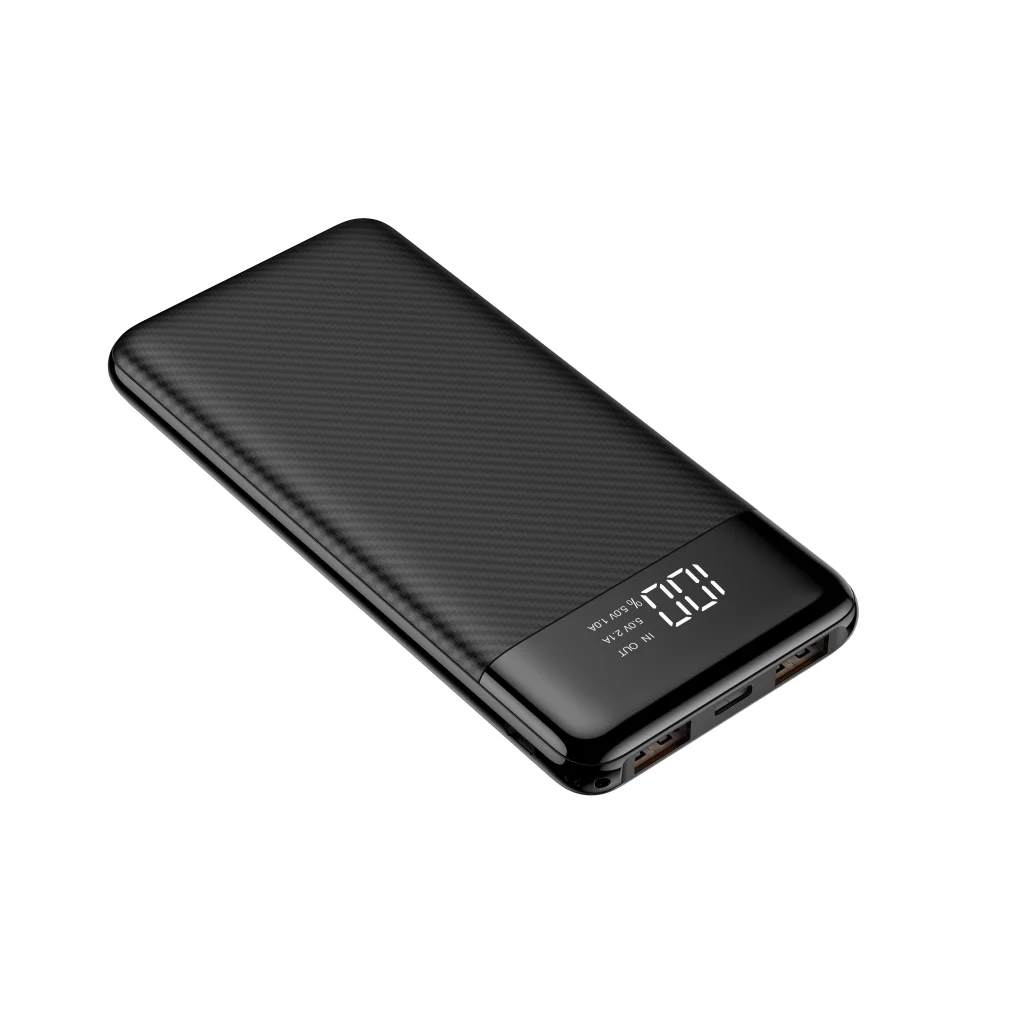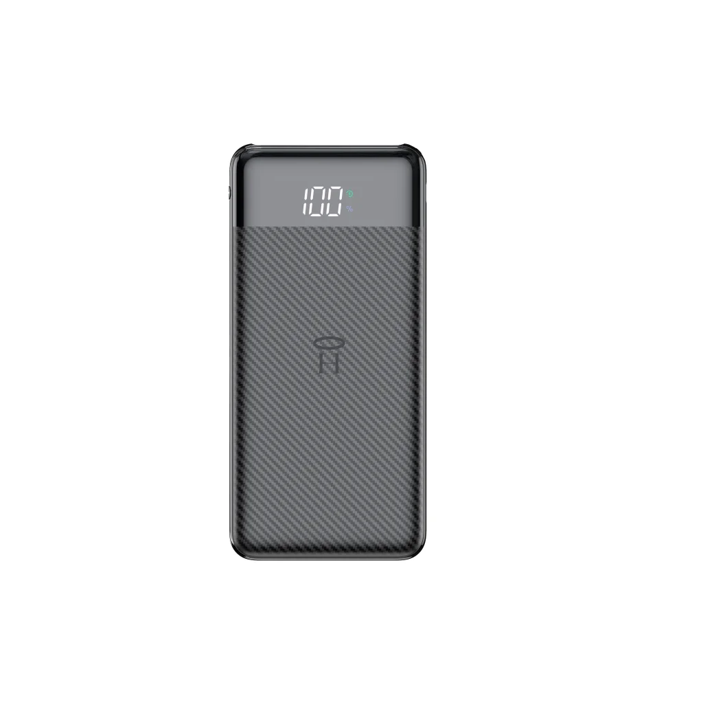 A minimalista, karcsú és könnyű dizájn (mindössze 220 g és 135.5 x 67 x 15 mm méret) révén a powerbank kényelmesen magával vihető bárhová, akár zsebben, akár táskában. A prémium karbon szálas felület nem csak modern és elegáns megjelenést kölcsönöz, hanem jobb tapadást és karcállóságot is biztosít. Az előlapon található intelligens LED kijelző pontosan mutatja a powerbank aktuális töltöttségi szintjét százalékban, így sosem éri meglepetés.