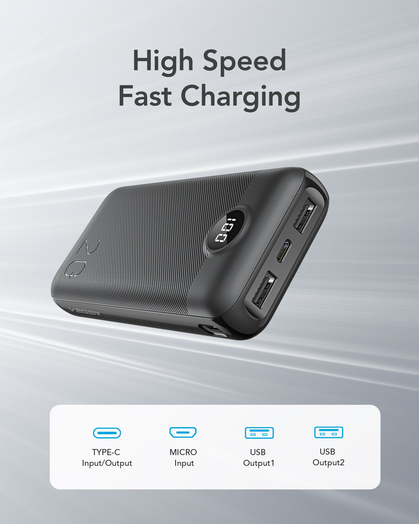 A Veger L20S powerbank minimalista, karcsú designja és mindössze 412 grammos súlya révén könnyedén magával viheti bárhová. Kényelmesen elfér táskájában vagy hátizsákjában, így ideális útitárs. Az intelligens LED kijelző pontosan tájékoztatja a powerbank aktuális töltöttségi állapotáról, így mindig tudni fogja, mikor van szükség újratöltésre. Kompakt méretének köszönhetően az eszköz repülőgépen is biztonságosan szállítható.