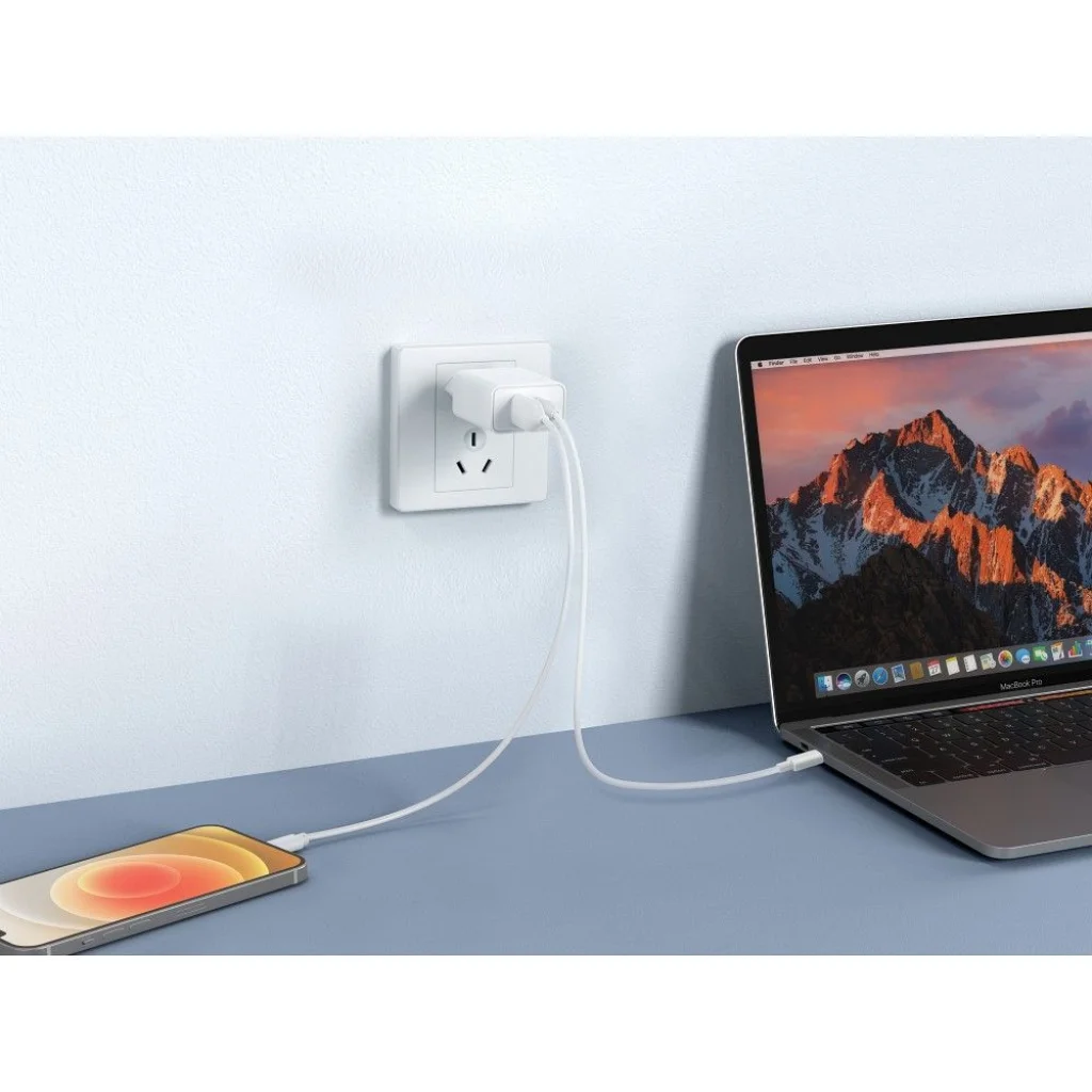 - Két eszköz egyidejű töltése: Ha mindkét portot használja, az adapter intelligensen osztja el a 15W összteljesítményt az eszközök között, biztosítva azok hatékony töltését.