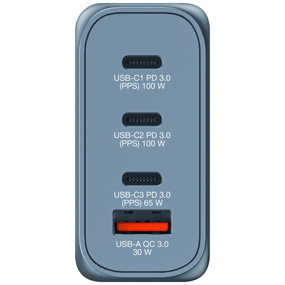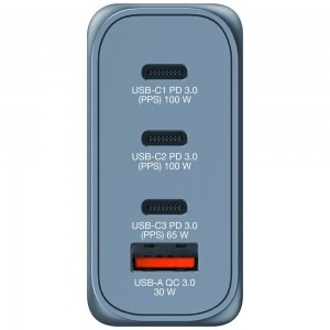 - Kimeneti teljesítmény portonként: USB-C1 PD 3.0 max. 100W, USB-C2 PD 3.0 max. 100W, USB-C3 PD 3.0 max. 65W, USB-A QC 3.0 max. 30W