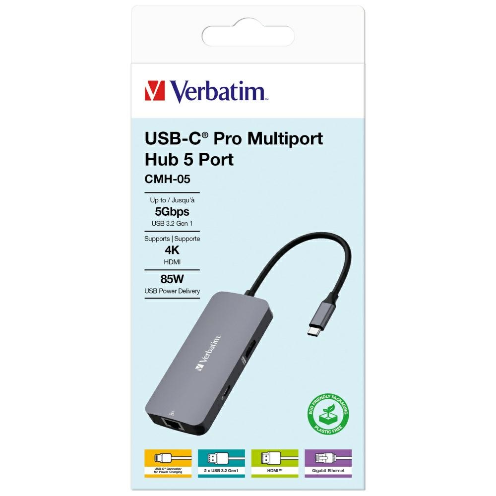 A Verbatim adapter az ideális megoldás azok számára, akik növelni szeretnék laptopjuk funkcionalitását. Ez a többportos adapter egy USB-C portot alakít át öt sokoldalú portra, amelyek tartalmaznak egy HDMI portot, egy Gigabit Ethernet portot, két USB-A portot és egy USB-C PD portot folyamatos töltéshez.