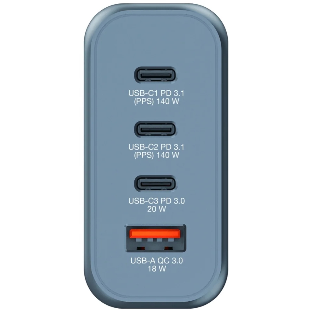 - Akár 4 eszköz egyidejű töltésének támogatása, maximálisan 140W teljesítménnyel