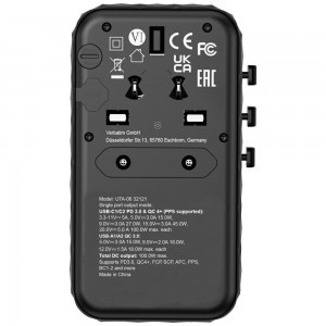 A kompakt Verbatim GaN III adapter egyidejűleg akár öt eszközt is képes tölteni. Hálózati aljzattal és négy USB-porttal (két USB-C és két USB-A) van felszerelve. Az USB-C portok támogatják a Power Delivery 3.0-t (PPS támogatással) és a Quick Charge 4+ funkciót, akár 100W teljesítménnyel. Az USB-A portok akár 18W teljesítménnyel Quick Charge 3.0 töltést biztosítanak.
