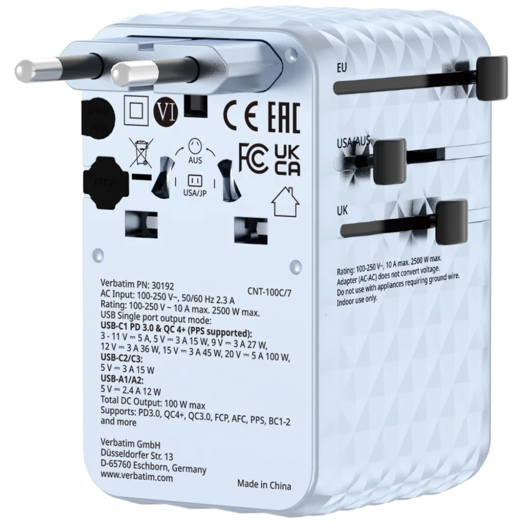 - Típus: Verbatim Travel Adapter EU/UK/US GaN 2xUSB-C/2xUSB-A/1xUSB-C PD 100W
