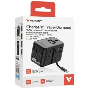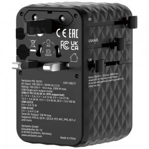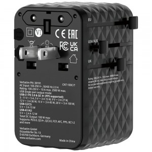 - Típus: Verbatim Utazóadapter EU/UK/US GaN 2xUSB-C/2xUSB-A/1xUSB-C PD 100W