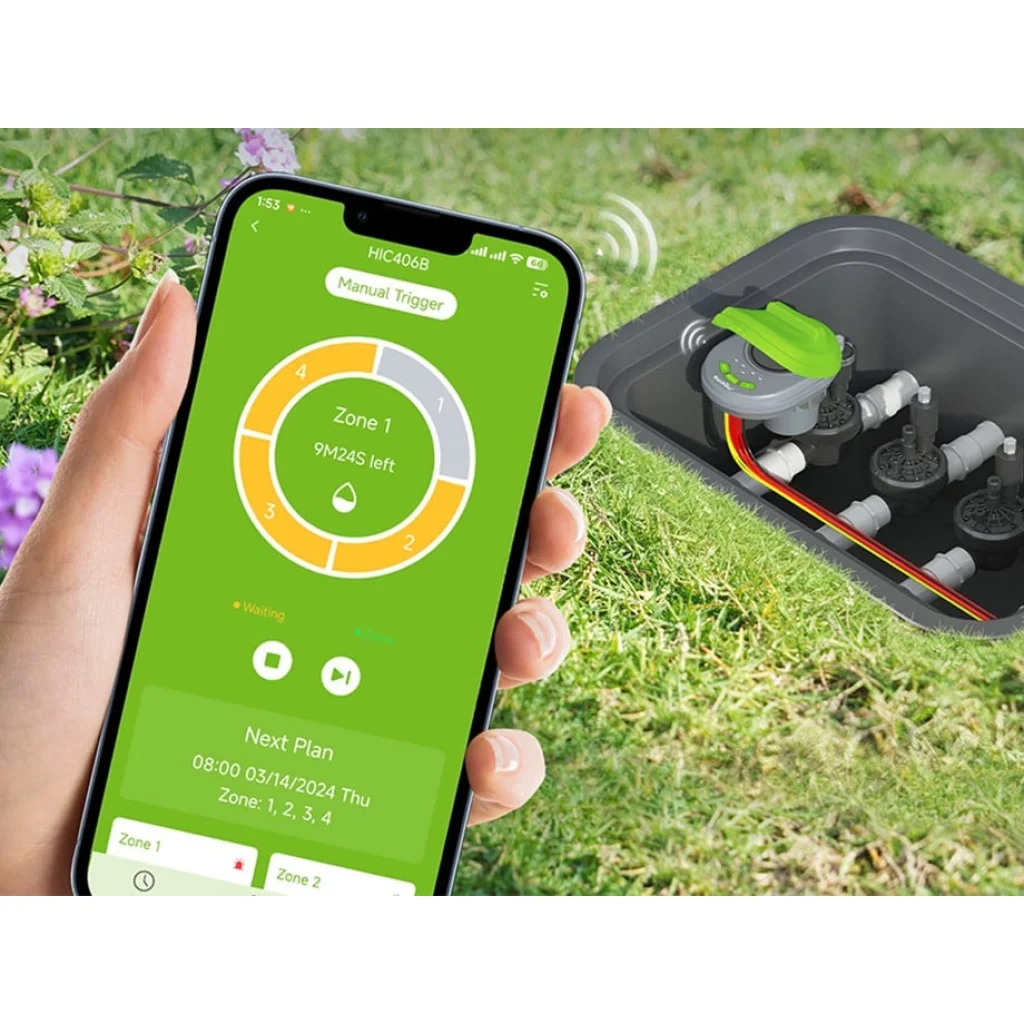A RainPoint vezérlő egy 4 irányú egyenáramú rendszert irányít, amely képes egy főszelep és három kiegészítő szelep kezelésére, biztosítva a precíz vízelosztást kertje különböző részein. Az áramlásszabályozás zónánként 50%-os pontossággal állítható be, minimalizálva a vízpazarlást. Minden egyes zónához akár nyolc egyedi öntözési ütemtervet programozhat, a rövid frissítő locsolásoktól a hosszabb, mélyreható ciklusokig. A szezonális beállítási funkcióval gyorsan igazíthatja a menetrendet a változó időjárási viszonyokhoz, optimalizálva a vízfogyasztást és biztosítva a növények ideális hidratálását.