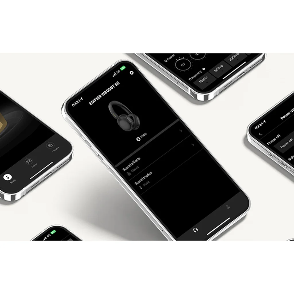 Személyre szabás az Edifier ConneX segítségével: Töltse le az Edifier ConneX alkalmazást, és szabja testre a hangélményt. Választhat az előre beállított Equalizer beállítások közül, vagy létrehozhatja saját hangprofilját, minden paramétert a saját preferenciáihoz igazítva. Az alkalmazásból ráadásul ütemezheti a fejhallgató automatikus kikapcsolását, vagy megkeresheti, ha elveszíti.