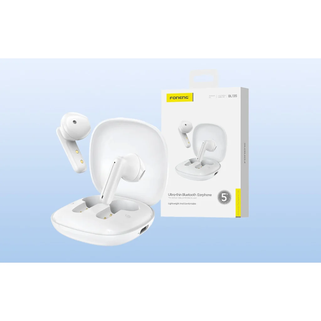 A Foneng BL135 fülhallgatót a kényelem jegyében terveztük. Az ultravékony és pehelykönnyű kialakításnak köszönhetően alig fogja érezni, hogy viseli őket, még órákig tartó használat után is. Ergonomikus formájuk tökéletesen illeszkedik a fül anatómiájához, biztosítva, hogy még intenzív edzés vagy mozgás közben sem esnek ki. A letisztult fehér szín és a modern, lekerekített töltőtok elegáns kiegészítővé teszi őket minden szettben, diszkrét megjelenést biztosítva.