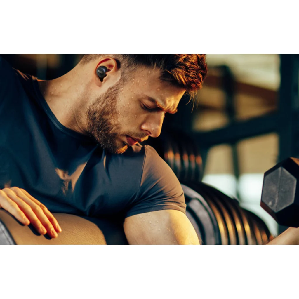 The earphones keep up with even the most active users! They are IPX8 rated, which means they are not afraid of drops of sweat or rain, so you can take them to the toughest workout with no worries. Don't give up running even in a downpour? Great! The earphones can accompany you even then!