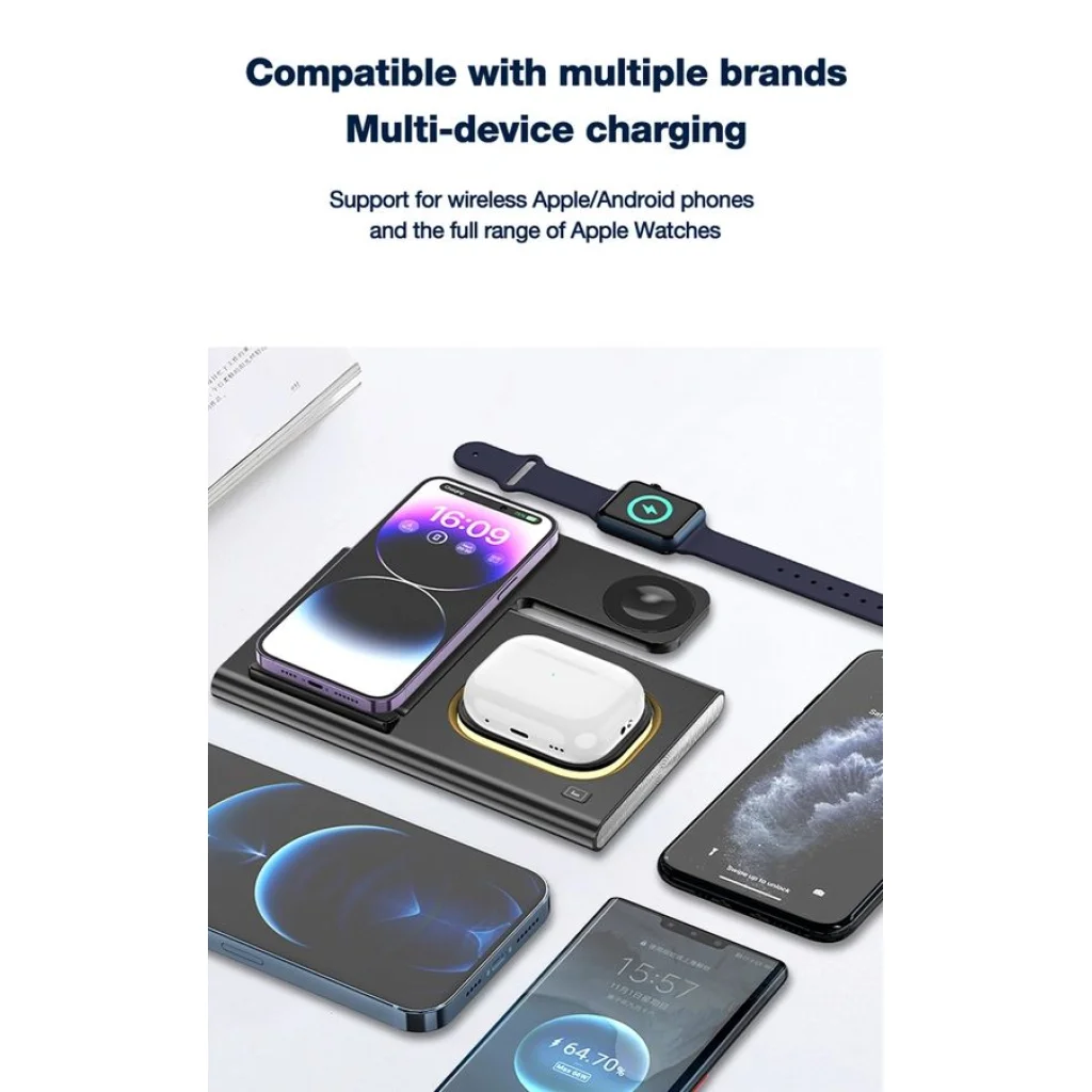 • Gyors és hatékony töltés: A 15W-os telefon töltési teljesítmény, 5W-os fülhallgató és 3W-os óra töltés biztosítja, hogy készülékeid gyorsan és hatékonyan feltöltődjenek, így kevesebb időt tölthetsz várakozással, és többet használhatod őket.