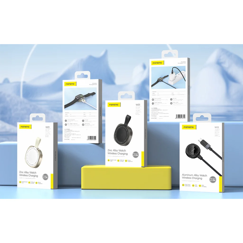 A Foneng W02 teljesítményt biztosít, amit egy kompakt vezeték nélküli töltőtől elvárhat. A 2,5 W-os teljesítmény gyors töltést biztosít, a mágneses csatlakozásnak köszönhetően pedig az órája azonnal elkezd töltődni, amint kapcsolatba lép a töltővel. Az W02 modell ideális az Apple Watch 1, 3, 5, 6, SE vagy Ultra sorozathoz.