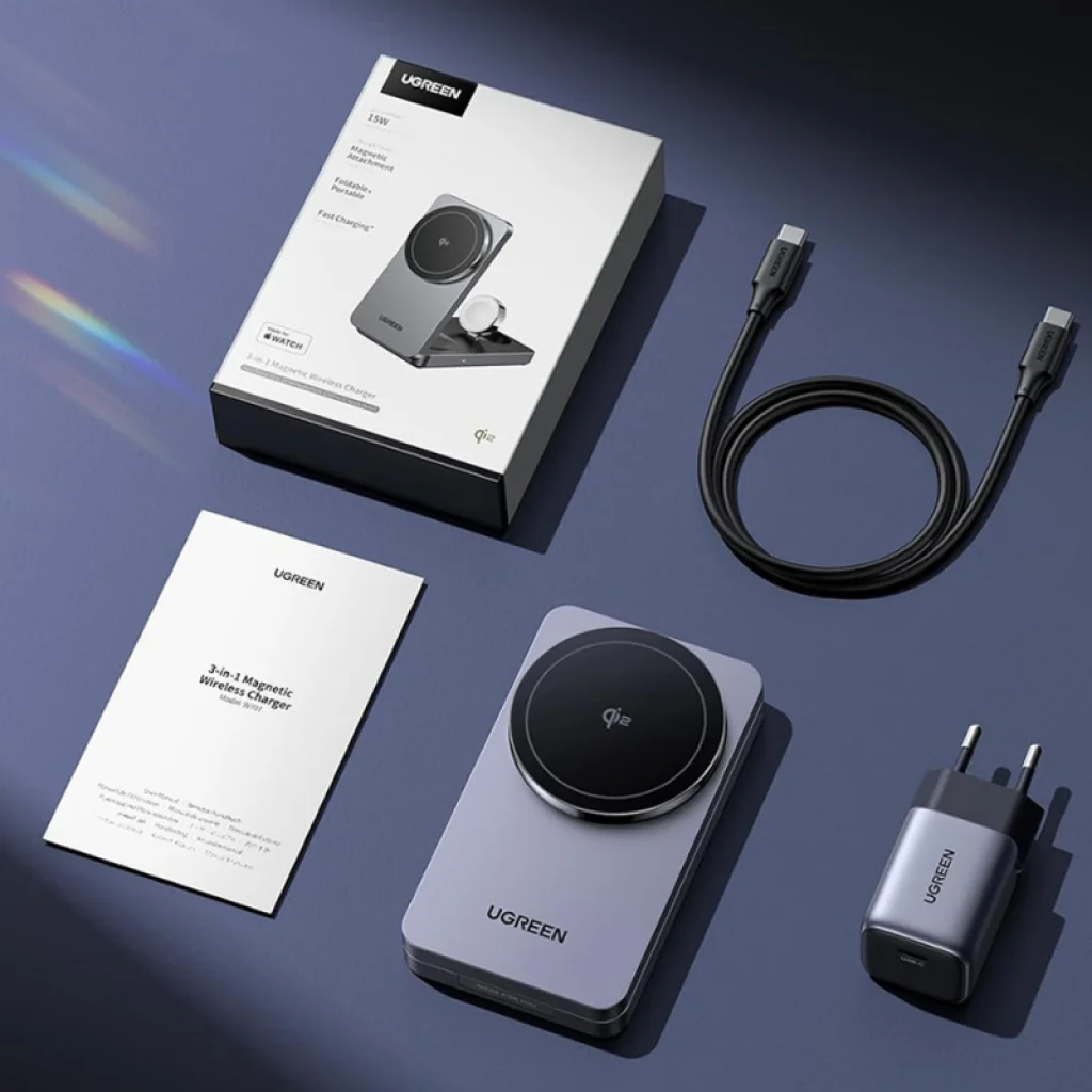 - UGREEN W707 3 az 1-ben vezeték nélküli töltő