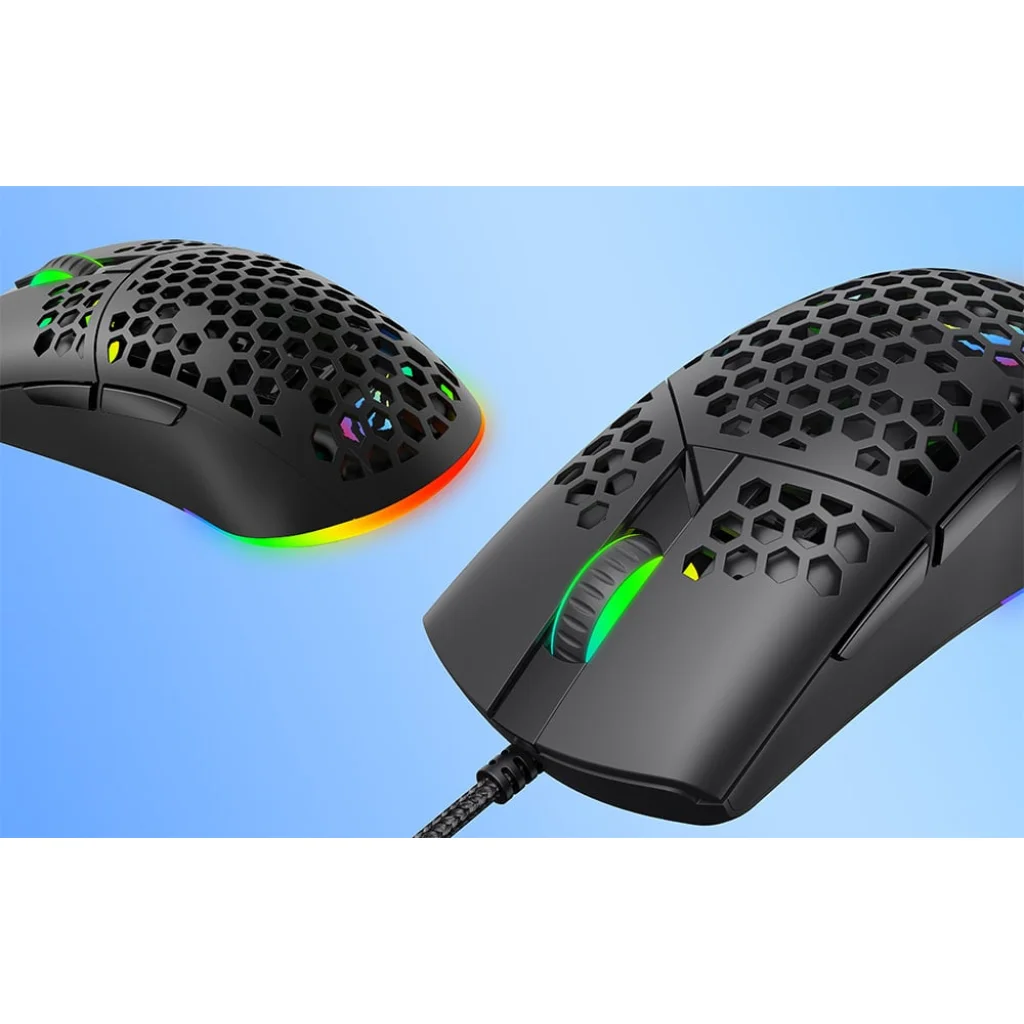 A Havit MS1036 egy fejlett játékegér, amely egyesíti a pontosságot, a funkcionalitást és a modern dizájnt. A DPI-beállítások széles választékával, az RGB világítási effektekkel és az ergonomikus formával az egér kiváló választás a megbízhatóságot és a kivételes vizuális élményt kereső játékosok számára.