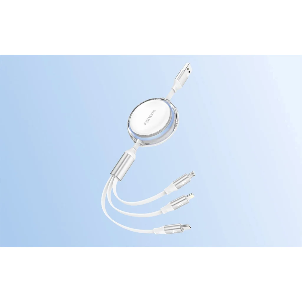 A 3 az 1-ben Foneng X113 kábel a funkcionalitást ötvözi a modern dizájnnal. Teleszkópos kialakítása révén ez a kábel nélkülözhetetlen tartozék az Android és Apple készülékek töltéséhez. Az 1,1 méteres hossz és rugalmas anyag miatt különböző körülmények között is kényelmesen használható, egyedi kialakítása pedig kiemeli a többi kábel közül.