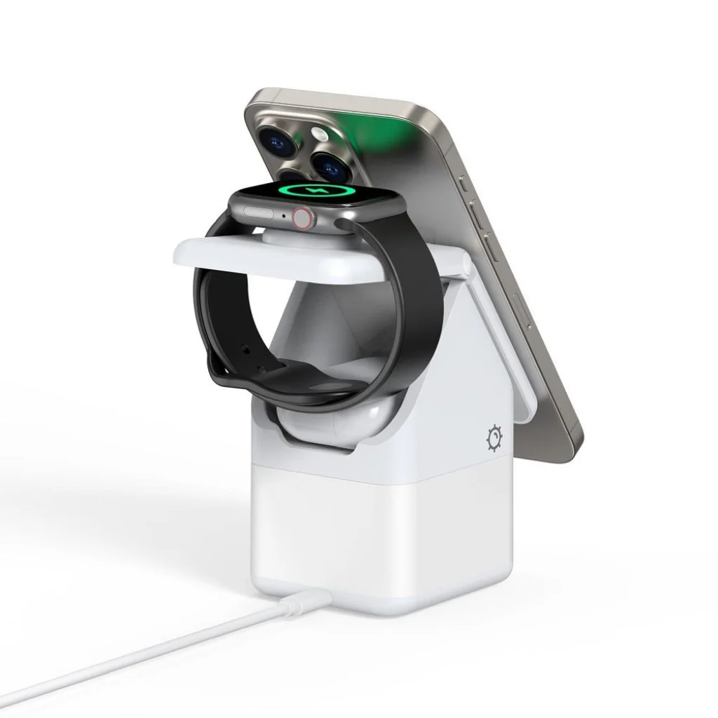 W20 4 az 1-ben ház alakú mágneses vezeték nélküli töltőállomás 15W fehér