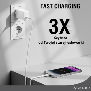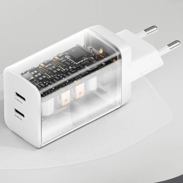 This charger thinks for you! Thanks to advanced GaN technology and adaptive charging, your devices are not only charged quickly but, most importantly, safely.                The technology intelligently adjusts the current and voltage to the requirements of the connected device, protecting it from overheating, overvoltage, and other threats.