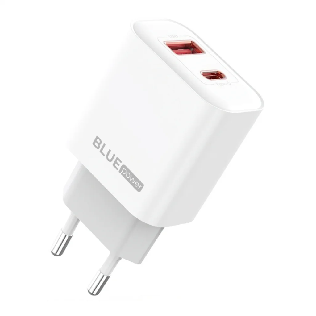 A Blue Power BPCE12 fali töltő a tökéletes megoldás mobil eszközök biztonságos töltésére. Kompakt, könnyű kialakítása lehetővé teszi, hogy bárhová magával vigye, anélkül, hogy sok helyet foglalna, ideális utazásokhoz. Egy USB Type-C és egy USB-A porttal rendelkezik, így egyszerre több eszközt is tölthet. Több gyors töltési technológiával felszerelt, 20W teljesítményt nyújt. Kompatibilis kábelekkel (külön megvásárolhatók) széles körű mobil eszközök tölthetők vele.