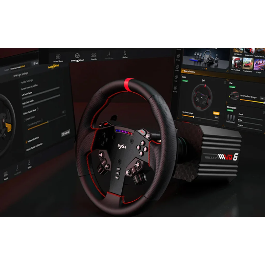 A PXN VD6 egy fejlett, közvetlen meghajtású kormánykerékalap, amely 6 Nm állandó nyomatékot és 7 Nm csúcsnyomatékot kínál. Az alacsony tehetetlenségi nyomatéknak és a többsebességes szervomotornak köszönhetően villámgyors reakciókat, erősebb visszajelzést és maximálisan valósághű vezetési élményt biztosít. A 24 bites kódolóval, a dedikált Sense+ algoritmussal és a többmagos PXN processzorral kombinálva a VD6 segítségével az útfelület és a jármű dinamikájának minden részletét érezheted - akárcsak egy valódi versenypályán.