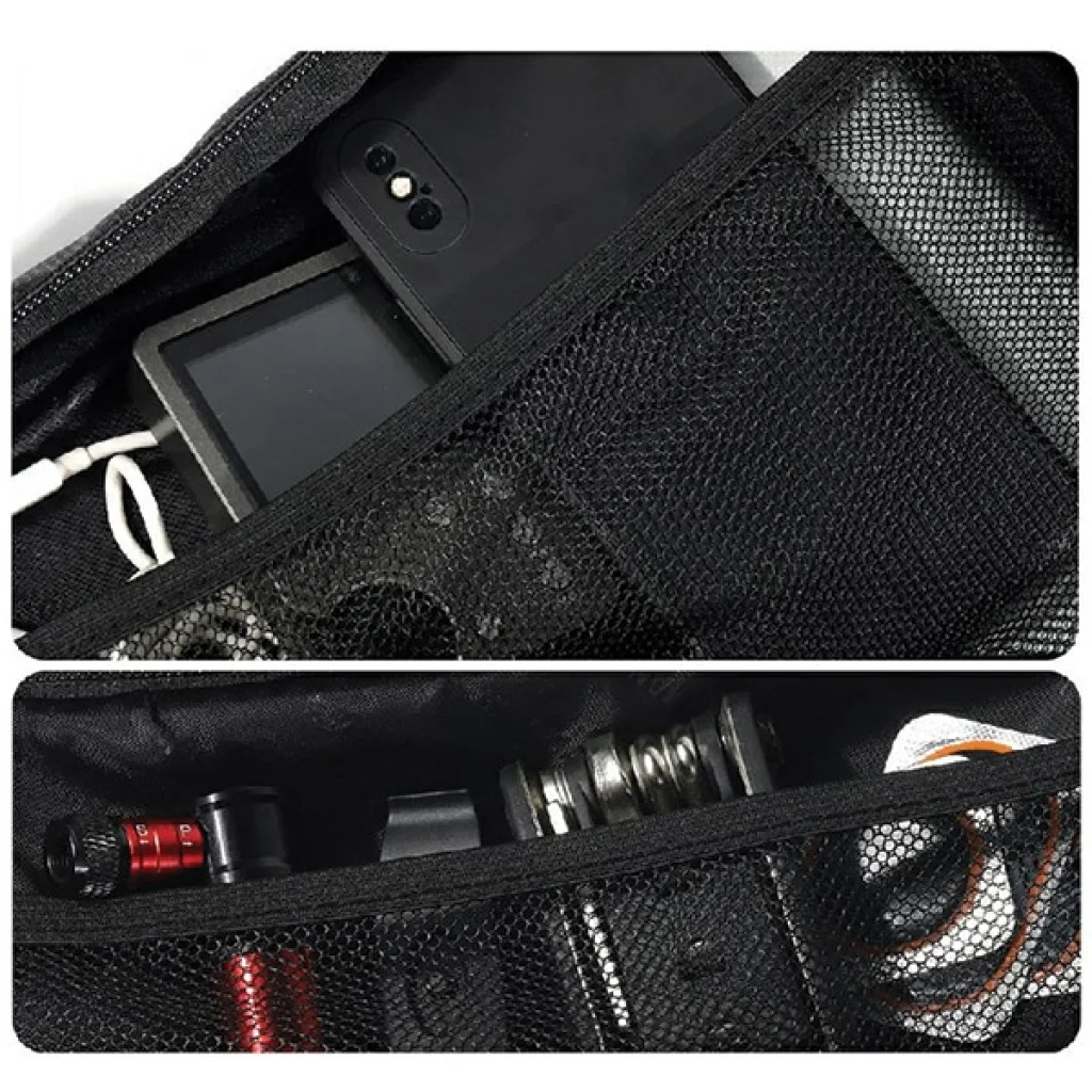 A nagy kapacitás és a kompakt méret a táska legnagyobb előnyei. A belső tér akár 3 liter helyet kínál, lehetővé téve az összes szükséges dolog, például ital, praktikus kerékpáros szerszámok, pénztárca vagy dokumentumok könnyű szállítását. Az ES19 táska belsejében belső zsebek és rekeszek találhatók, amelyek segítenek rendszerezni és elválasztani a tárgyakat a gyors és könnyű hozzáférés érdekében. A dupla cipzár további biztonságot nyújt és megakadályozza a tartalom kiesését.