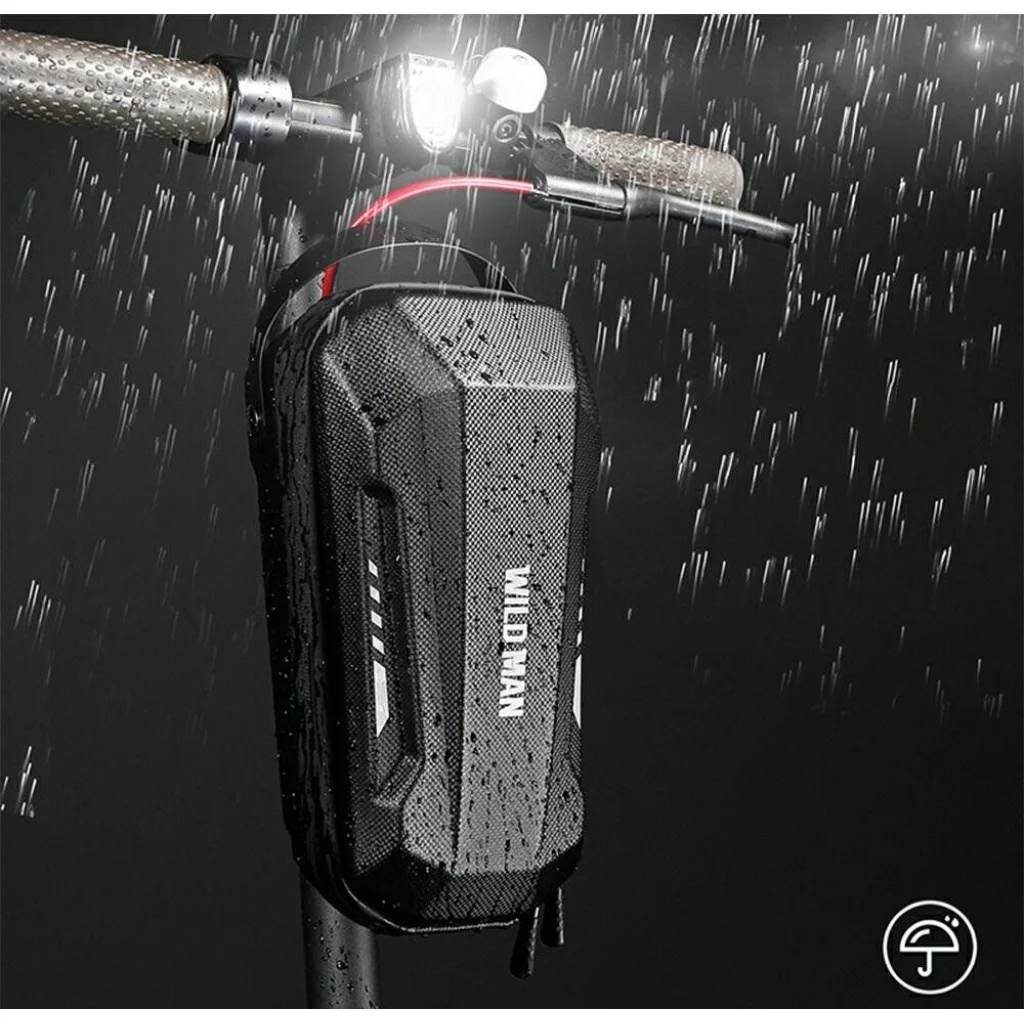 A WILDMAN GD9X egy kompakt táska roller kormányához, amely ideális a szükséges dolgok tárolására utazás közben. 2 literes kapacitásával elfér benne egy telefon, pénztárca, kulcsok vagy kisebb vásárlások, anélkül, hogy korlátozná a roller kényelmes használatát. Vízálló anyagból készült, hatékonyan védi a tartalmat a nedvességtől és szennyeződésektől. Az erős felépítés és a szoros zárás biztosítja a tartósságot és a biztonságos használatot különböző időjárási körülmények között. A telepítés tépőzáras pántokkal gyors és nem igényel szerszámokat. Főbb jellemzők: