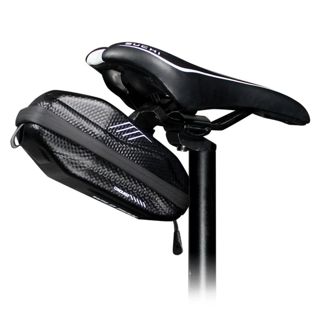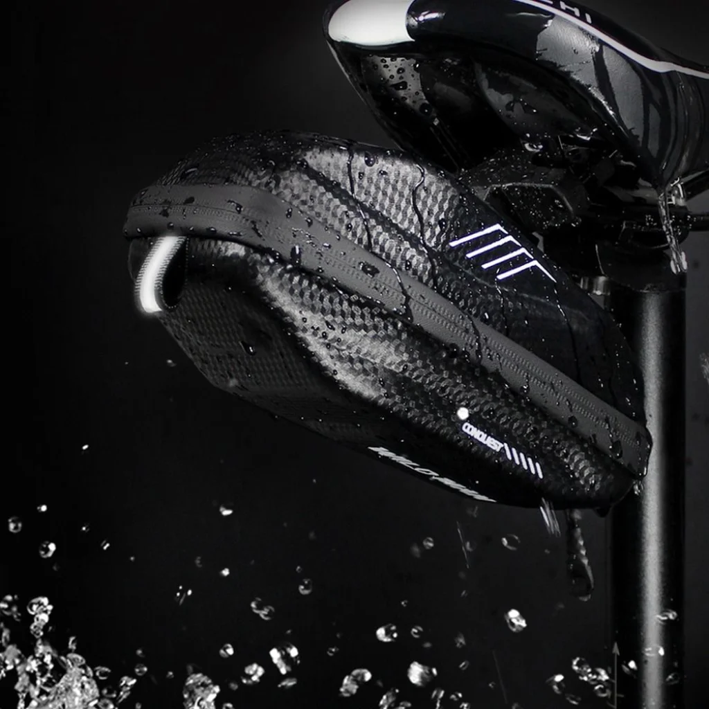 Biciklis táska cipzárral, amely az ülés alá szerelhető. Lehetővé teszi a mobiltelefon biztonságos szállítását. Használható szerszámtáskaként vagy kiegészítők szállítására szolgáló kerékpártáskaként is. A táska tartós anyagokból készült: PU és EVA, így ellenáll a sérüléseknek, ha a kerékpár felborul. Két rekesszel rendelkezik, amelyek rendezőként működnek. A merevített szerkezet megakadályozza a deformálódást, és megvédi a benne tárolt tárgyakat a sérülésektől. A vízálló anyag megvédi a kiegészítőket a nedvességtől és a fröccsenésektől, így esőben is használható a táska. Specifikáció: Anyag: PU + EVA Kapacitás: 0,8l