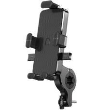 Átlátszó telefon tartóval, amely lehetővé teszi a telefon használatát kerékpározás közben.