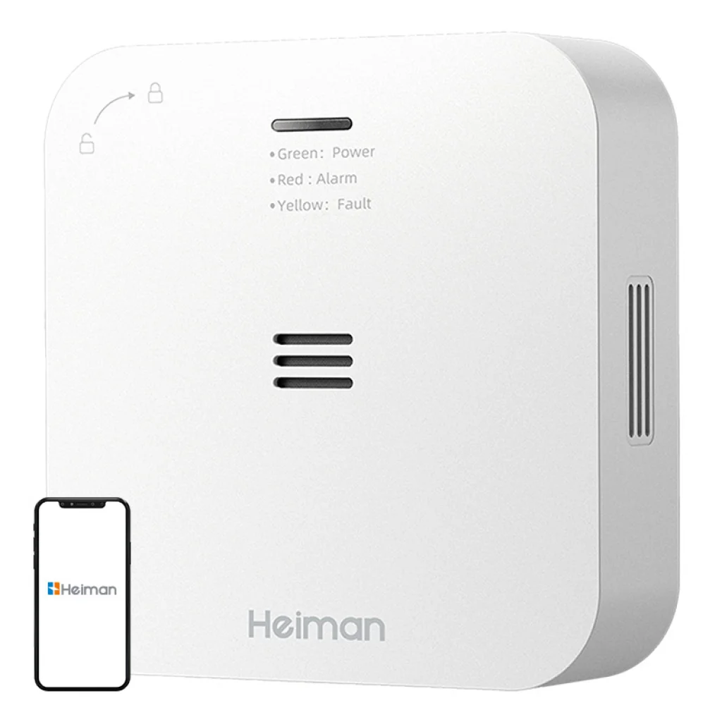 A Heiman HM-720ES-W egy intelligens szén-monoxid-érzékelő vezeték nélküli összekapcsolt modullal, amely megbízható védelmet nyújt otthon, szállodában, étteremben vagy ipari üzemben. Valós időben érzékeli a szén-monoxid jelenlétét, vészhelyzet esetén pedig 85 dB-es hangjelzést vált ki, és értesíti a többi csatlakoztatott eszközt. Az elektrokémiai érzékelő nagy pontosságú mérést és akár 10 éves élettartamot garantál. A készülék emellett öndiagnosztikai funkciót, alacsony feszültség riasztást és mobilalkalmazáson keresztüli vezérlési lehetőséget is kínál.