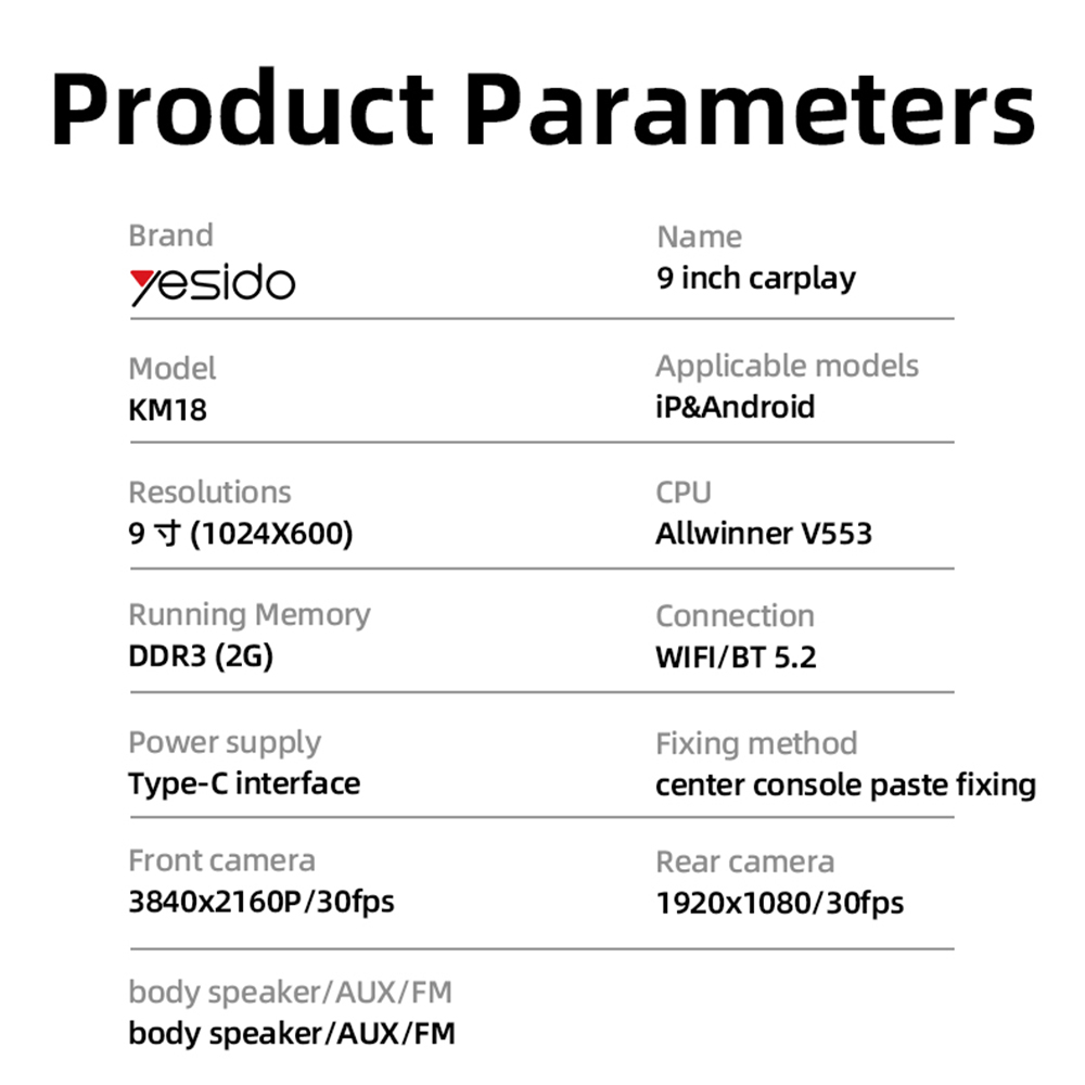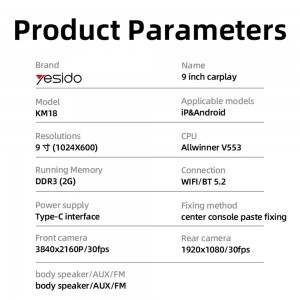 A Plug&Play kialakításnak köszönhetően a Yesido KM18 gyorsan és egyszerűen telepíthető. A mellékelt ragasztható rögzítéssel stabilan elhelyezhető a középkonzolon, Type-C tápellátásának köszönhetően pedig kényelmesen csatlakoztatható. A rendszer kompatibilis mind iOS, mind Android eszközökkel, és a 16 nyelvű menürendszernek hála világszerte könnyen használható.
