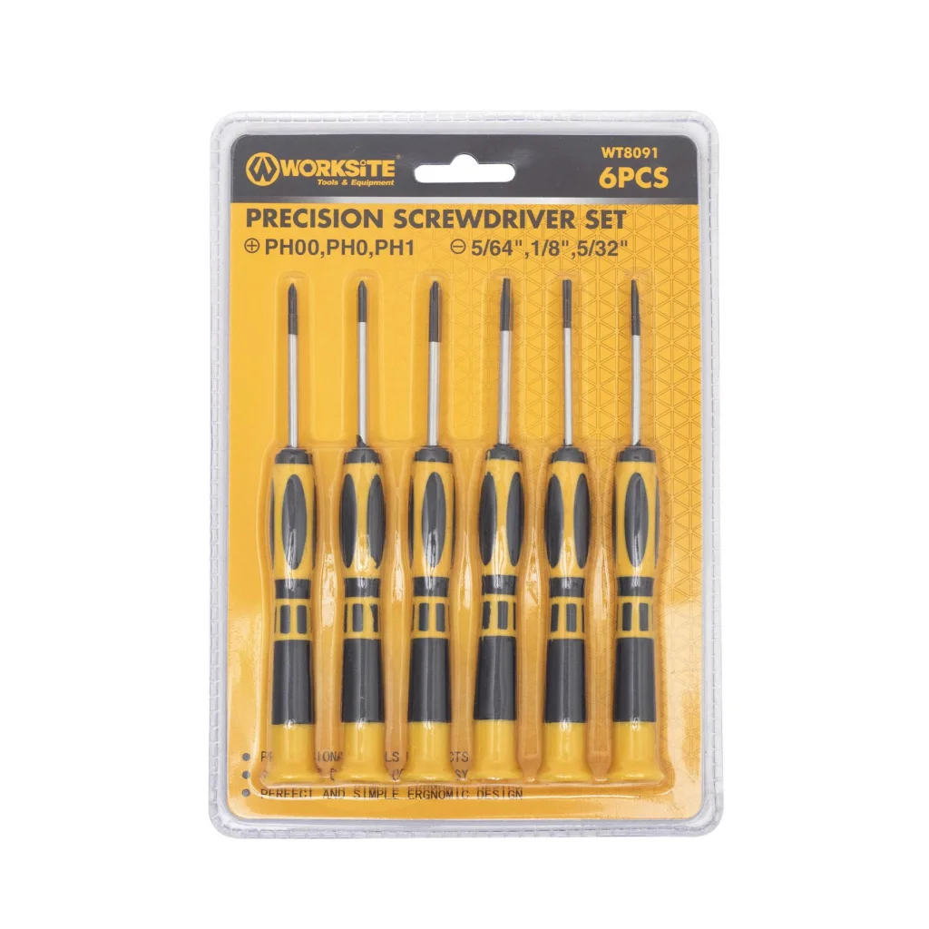 A WORKSITE WT8091 műszerész csavarhúzó készlet tökéletes választás minden olyan feladathoz, ahol pontosság és precíz irányítás szükséges. A hat darabos készlet tartalmaz mágneses lapos és Phillips csillag fejeket, amelyek ideálisak elektronikai javításokhoz, finommechanikai szerelésekhez és egyéb aprólékos munkákhoz. A gondosan tervezett ergonomikus kialakítás biztosítja, hogy a szerszámok hosszabb használat során is kényelmesen és stabilan tarthatók legyenek.