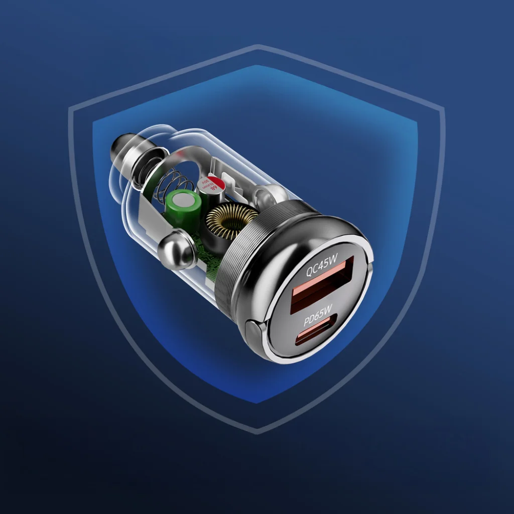 - Többszörös biztonsági védelem: Beépített intelligens védelmi rendszerek az eszközök és a töltő biztonságáért túltöltés, túláram, rövidzárlat és túlmelegedés ellen.