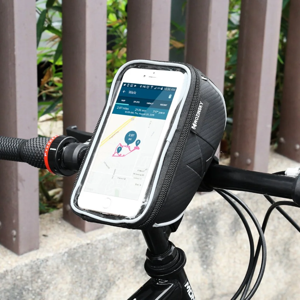 Nélkülözhetetlen kiegészítő minden aktív életmódot élő, biciklizni szerető embernek. Kormányon rögzíthető, prémium minőségű PVC és polyester anyaghasználattal készült, vízlepergető telefontartó. Kijelzőt kezelhető felülete lehetővé teszi hogy kezelhessük készülékünket menet közben, továbbá védelmet is nyújt számára.
