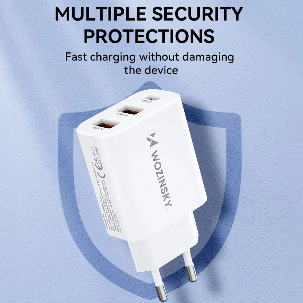A Wozinsky CWCUCW töltő beépített biztonsági funkciói biztosítják az eszközök biztonságát töltés közben. Védelmet nyújtanak a túlzott áramerősség, túlfeszültség és túlmelegedés ellen, ami kulcsfontosságú az elektronikus eszközök hosszú távú hatékonyságának fenntartásához.