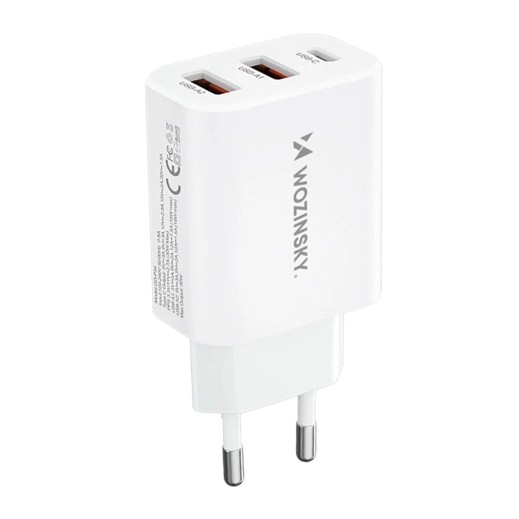 Wozinsky CWCUCW 30W USB-C / 2 x USB-A hálózati töltő - fehér A Wozinsky CWCUCW hálózati töltő egy nélkülözhetetlen eszköz, amely ideális választás mind otthoni használatra, mind utazáshoz. Gyors és hatékony töltést biztosít különböző eszközök számára. Három kimeneti portjának - egy USB-C és két USB-A - köszönhetően egyszerre töltheti telefonját, okosóráját vagy fejhallgatóját, ami felbecsülhetetlen, amikor az idő kulcsfontosságú. A használat biztonságát beépített védelem, köztük túláram- és túlfeszültség-védelmek garantálják. A tartós PC és ABS ház megvédi a töltőt a mechanikai sérülésektől.