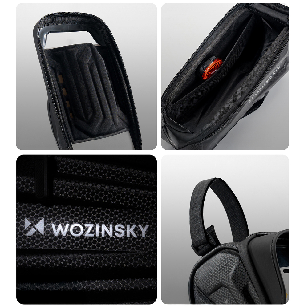 ~ A Wozinsky kerékpáros táska a vázra, páncélozott, telefontartóval, 1.7 l - fekete legfontosabb előnyei:- Védelem minden körülmények között: vízálló anyag és egy további burkolat védi a tartalmat az esőtől.