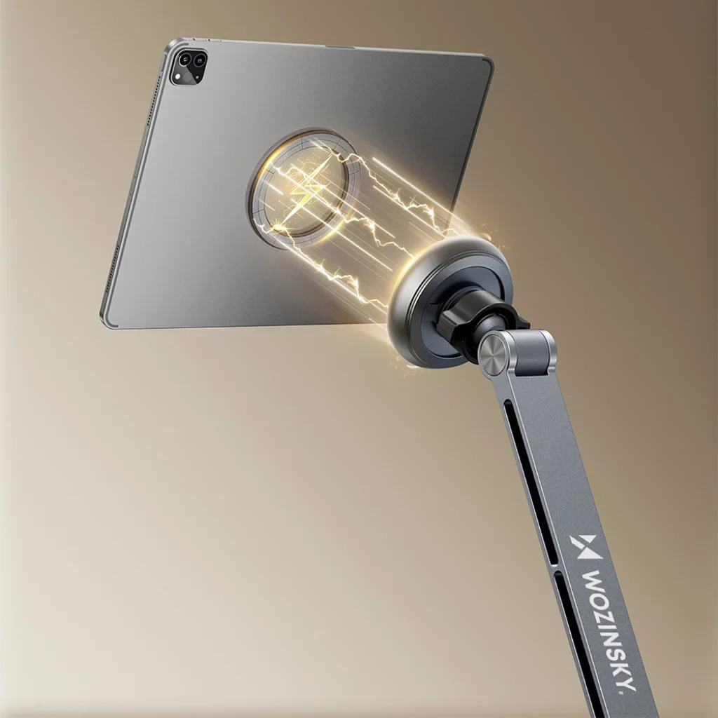 A Wozinsky WTY0YS1 egy mágneses telefon- vagy tablet tartó, amely lenyűgöz rugalmasságával, tartósságával és funkcionalitásával. A 360°-os forgatás, a 53 cm-ig állítható magasság és az összecsukható kialakítás tökéletessé teszi mind otthonra, mind munkahelyre. A stabil, három tengelyes konstrukció garantálja az eszköz biztonságát, míg a 20 erős mágnessel rendelkező mágneses rögzítőrendszer biztonságosan tartja még a nehezebb tableteket is. Praktikus megoldás bárkinek, aki értékeli a kényelmet, a helytakarékos és modern kialakítást.