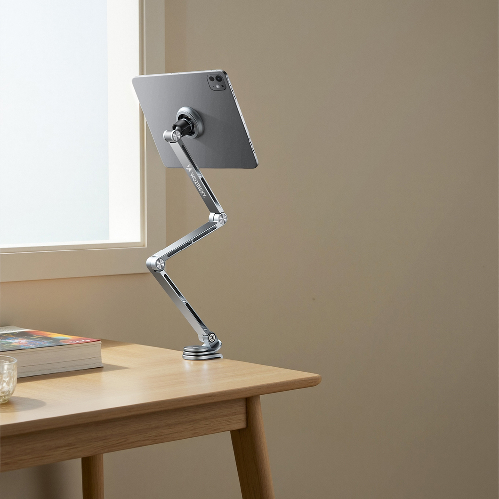 - Állítható magasság akár 53 cm-ig: Kényelmesen beállítható a telefon vagy tablet optimális szintre – legyen szó munkáról, főzésről vagy pihenésről.