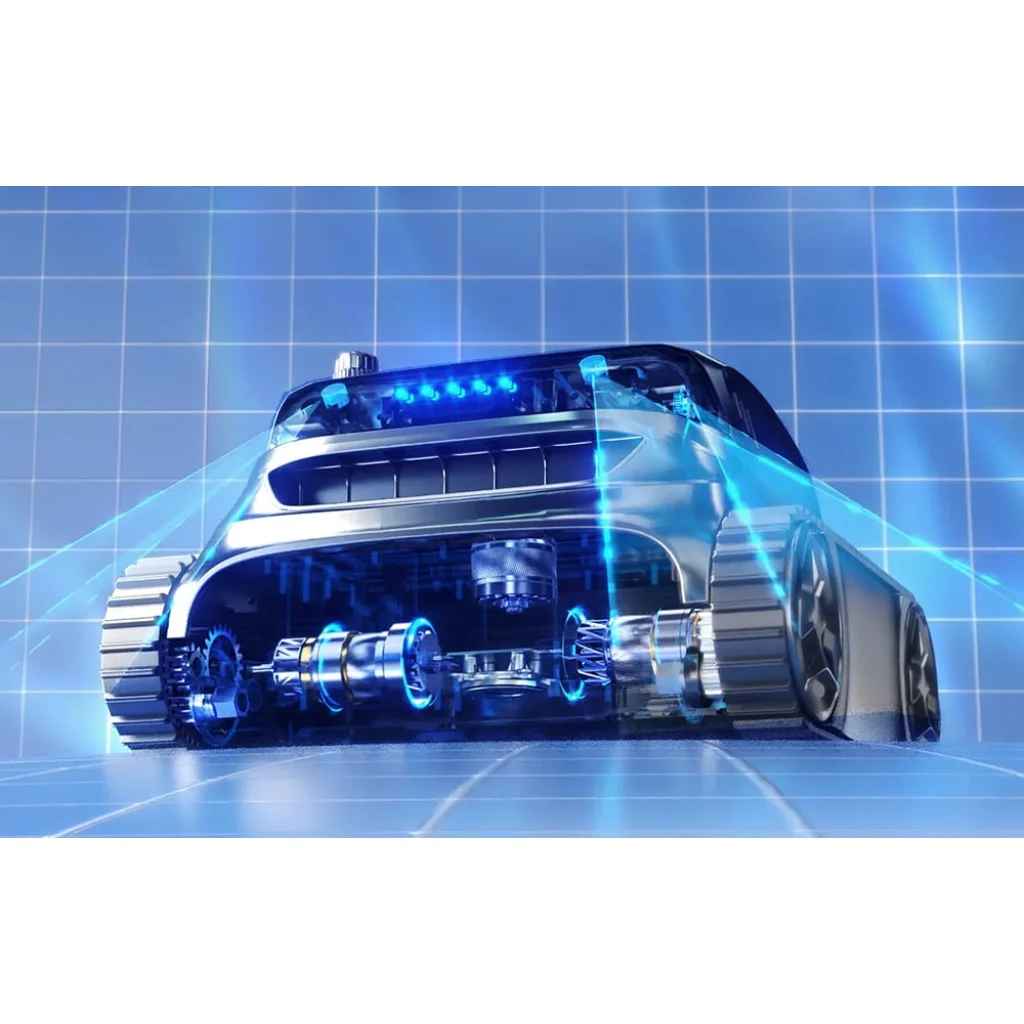 Az alkalmazott kefe nélküli motor nagy tisztítási hatékonyságot biztosít. A 3962 GPH átlagos szívóerővel gyorsan eltávolíthatja az olyan szennyeződéseket, mint a homok, levelek, apró kövek, haj, por vagy algák. Emellett az akár 10 m/perc mozgási sebesség lehetővé teszi a szennyeződések egyenletes és alapos eltávolítását a medence teljes felületéről.